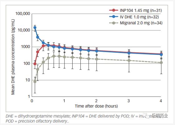 另外,獲批基于的關(guān)鍵性開放標簽臨床3期試驗(STOP301研究)(NCT03557333)數(shù)據(jù)顯示,在第一次給藥INP104后2小時,38%的患者頭痛消失、66%的患者頭痛減輕。在頭痛消失的患者中,有93%能夠持續(xù)24小時無頭痛,86%能夠持續(xù)48小時無頭痛。