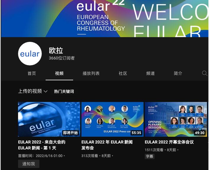 月初筆者收到了歐洲風濕病學協(xié)會聯(lián)盟EULAR視頻網站的推送提醒,本屆年會于2022年6月1~4日在丹麥哥本哈根以網絡平臺和面對面的方式舉行。重大學科年會是研究成果披露的重要場合,是學科前沿發(fā)展的風向標,筆者訪問年會官網查看會議日程,交流形式,以及下載、檢索、研讀本屆年會年鑒摘要匯編。