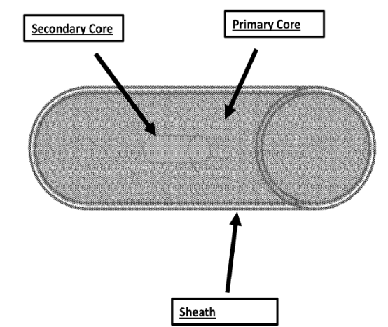 根據(jù)專利文件可知,此植入體遞送系統(tǒng)包含3個部分:1)含有生物可降解材料的最外層(sheath);2)含有活性成分的Primary Core;3)Sendary Core:含有信號標(biāo)志物,使得能夠遠(yuǎn)程遠(yuǎn)程監(jiān)控植入體的藥物釋放狀態(tài)。