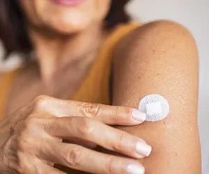 使用透皮貼劑進(jìn)行激素替代療法的女性。(來源:iStock)